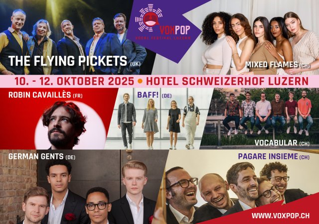 Voxpop ist das erste und einzige A-Cappella-Festival der Zentralschweiz und findet dieses Jahr zum vierten Mal im historischen Zeugheersaal des Hotel Schweizerhof Luzern statt.